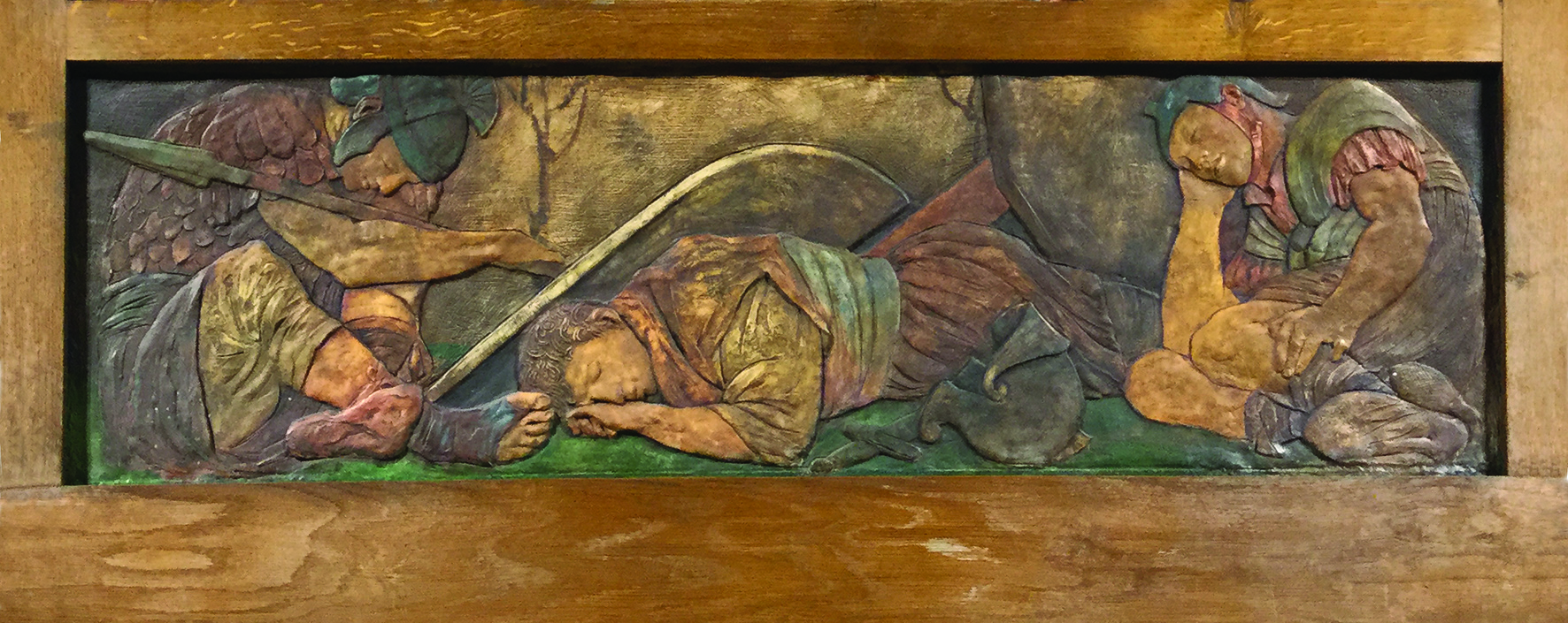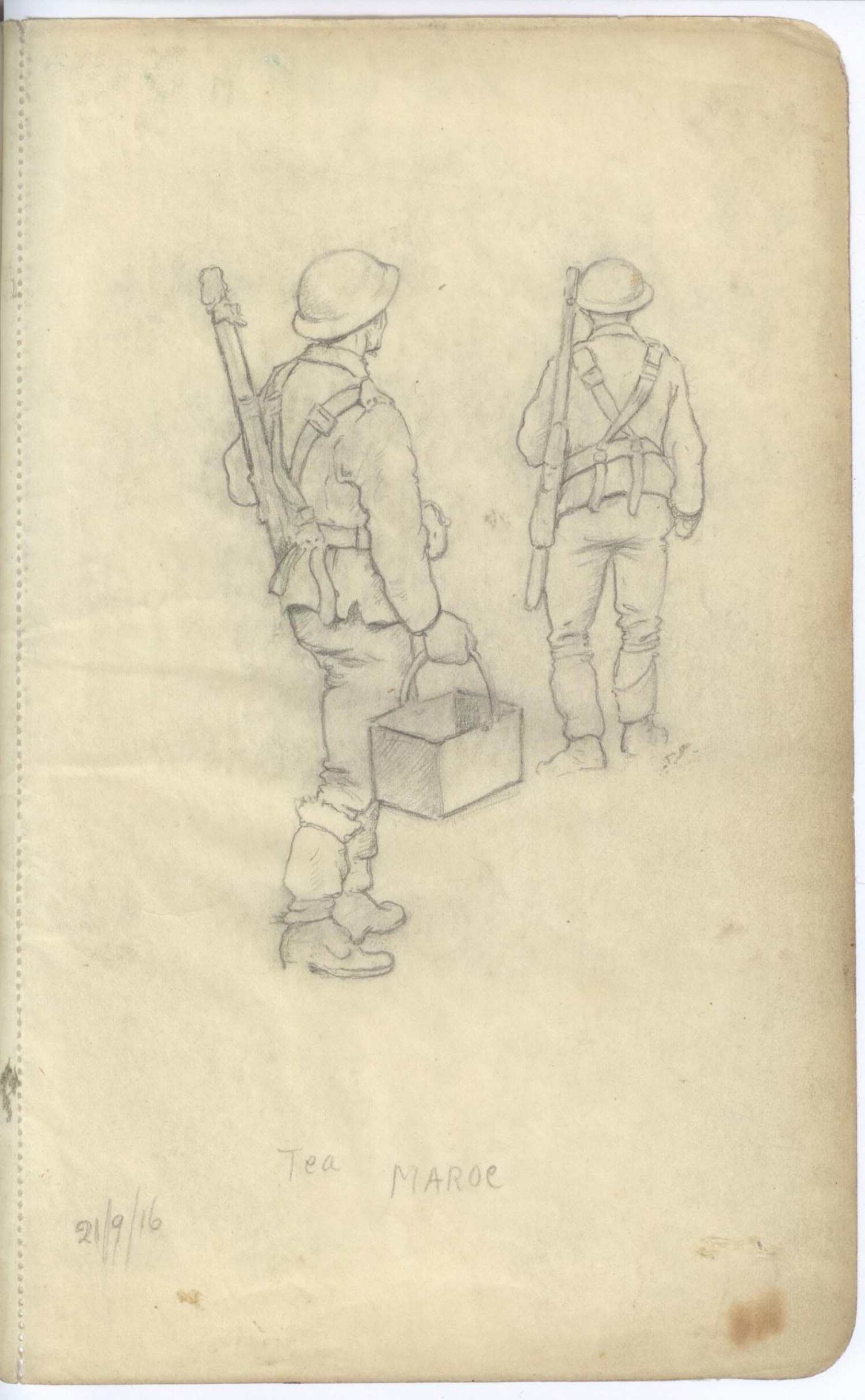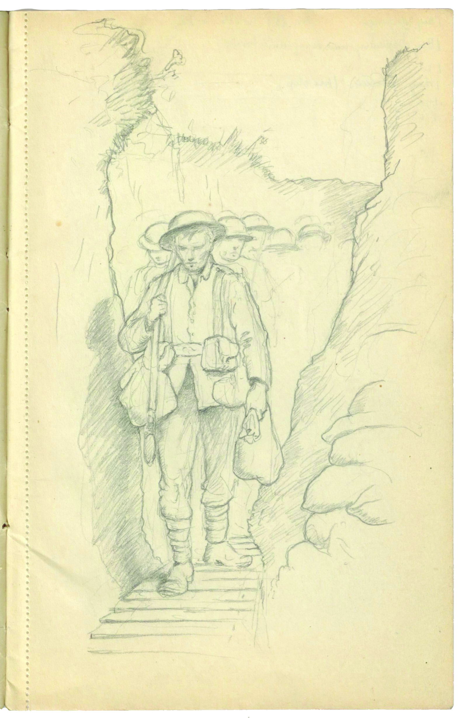 Below are some pages from Morris’s wartime sketchbooks (France 1916-19) and a few examples of Alice’s small-scale sculpture, designs for stained glass and memorials, in bronze, stone and plaster. Click once on an image for a closer look.