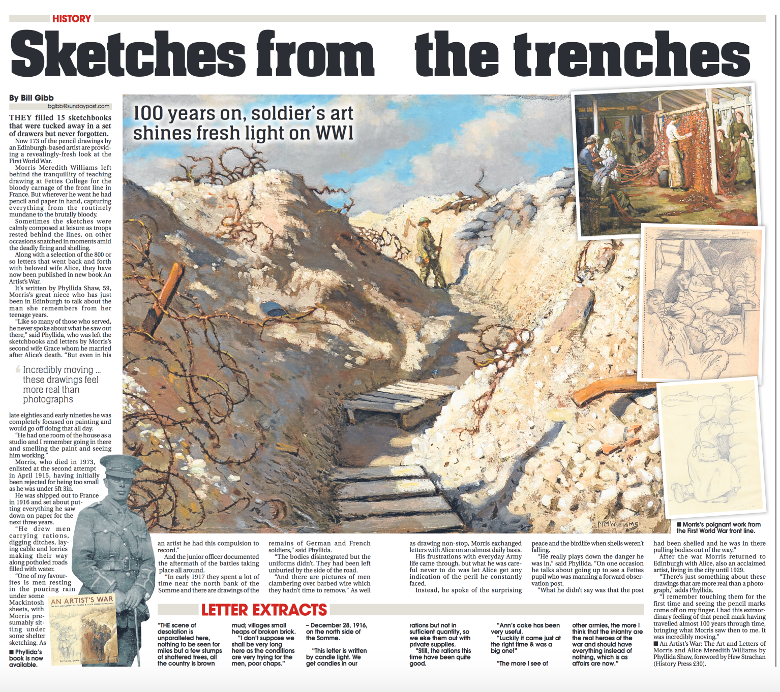“The work of both husband and wife is covered in this beautiful, informative book. Combining the letters they exchanged, sometimes almost daily, and his remarkable drawings and paintings, it is a unique diary of the war.” Duncan Macmillan, Scotland on Sunday, 2nd July 2017
